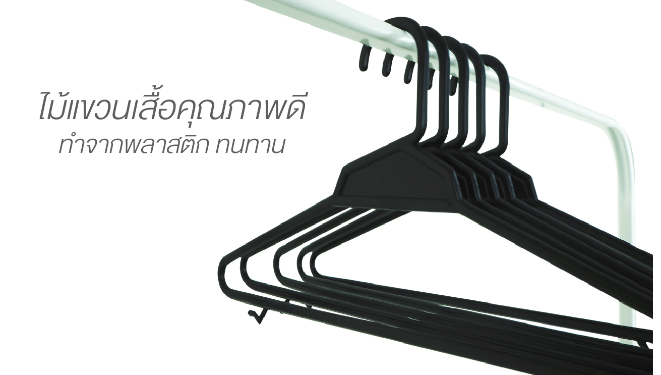 ไม้แขวนเสื้อสำหรับการบริการซักอบรีดแบบ Regular เป็นสีดำ และมีความแข็งแรงทนทานในการรับน้ำหนักของเสื้อผ้าทุกชนิด
